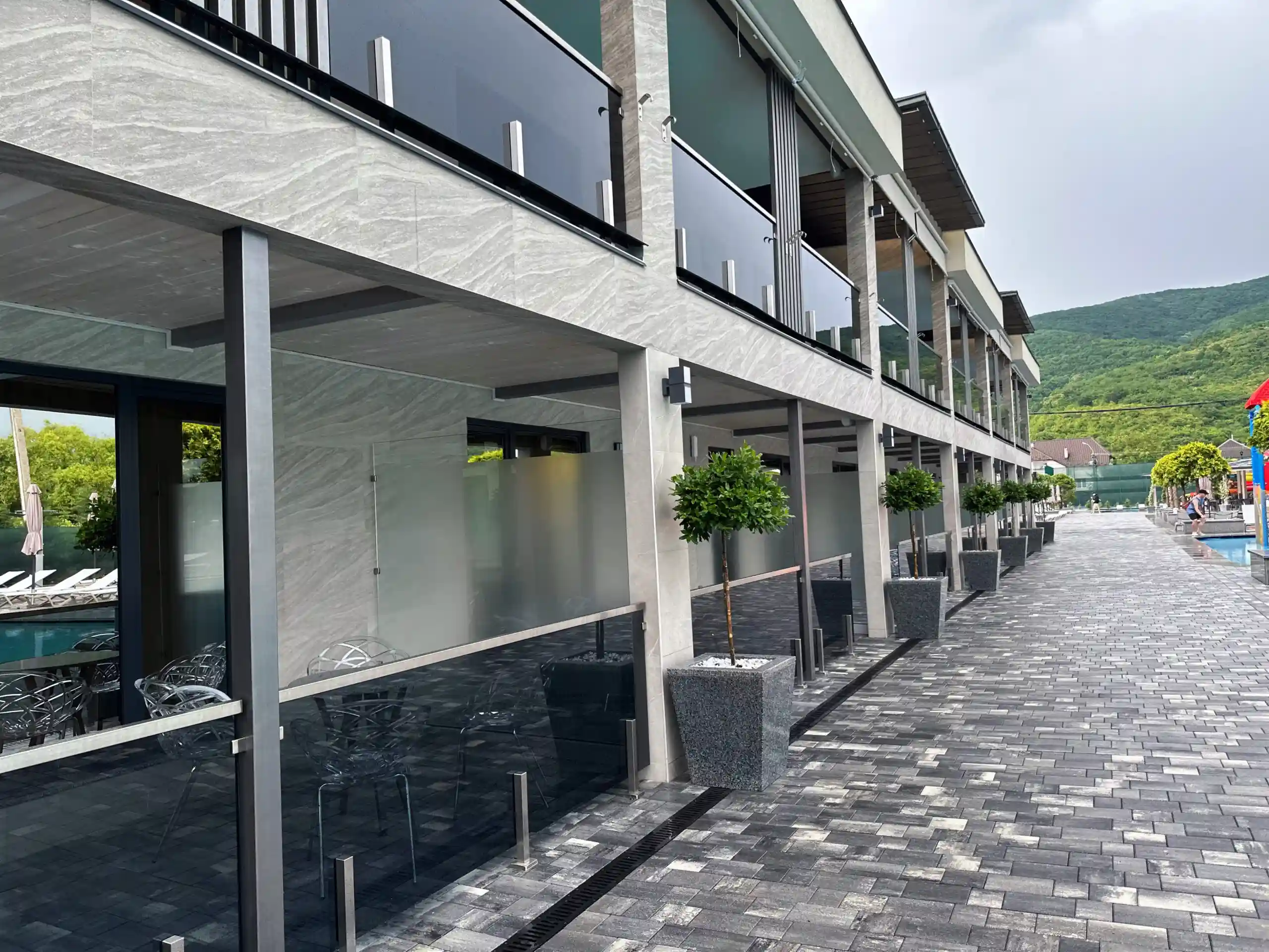 • Користування відкритими басейнами (три з чотирьох з підігрівом, 1 басейн з солоною водою з 9.00 по 20.00)
